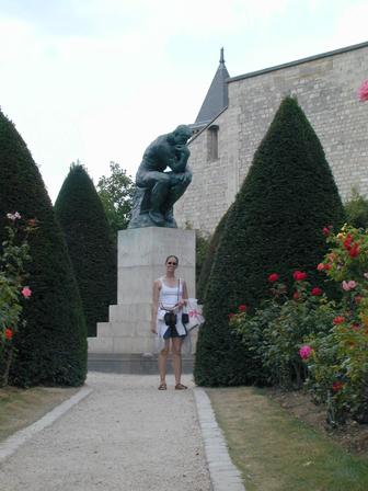 Kacy in front of the "Thinker"