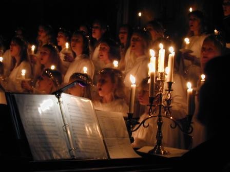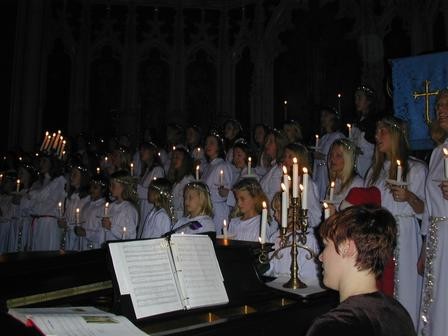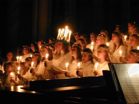 Kacy & I on St. Lucia's day (Swedish Holiday) with Dad Bradshaw and his Aunt Gladys